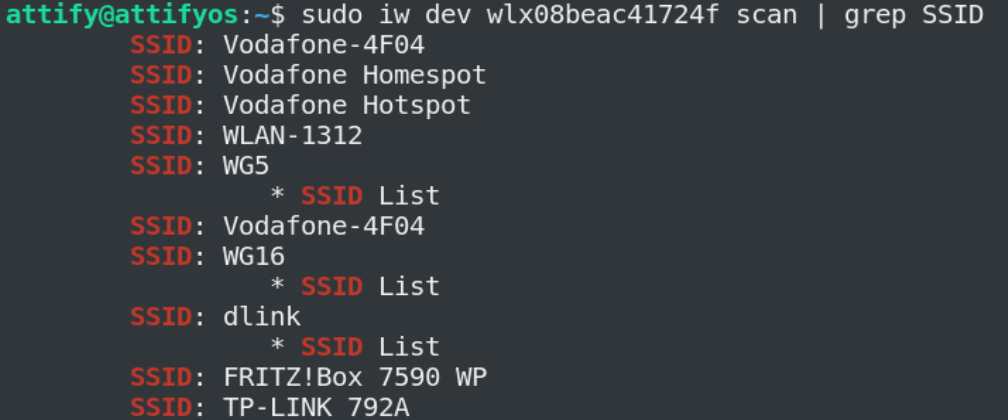 sudo iw dev wlx08beac41724f scan | grep SSID