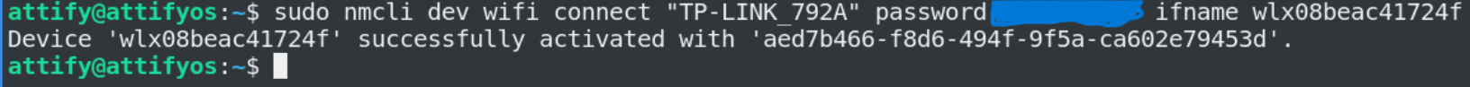 sudo nmcli dev wifi connect "TP-LINK_792A" password "YOUR_PASSWORD" ifname wlx08beac41724f