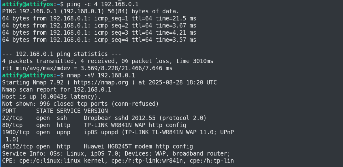 Our second step is a basic Nmap service detection scan against the router to find exposed services running by default.